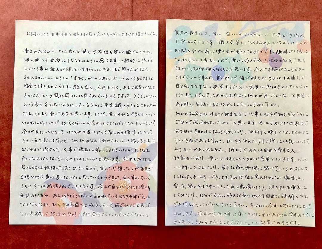 生年月日をお聞きし色彩数秘術とリーディングによって導き出したメッセージを